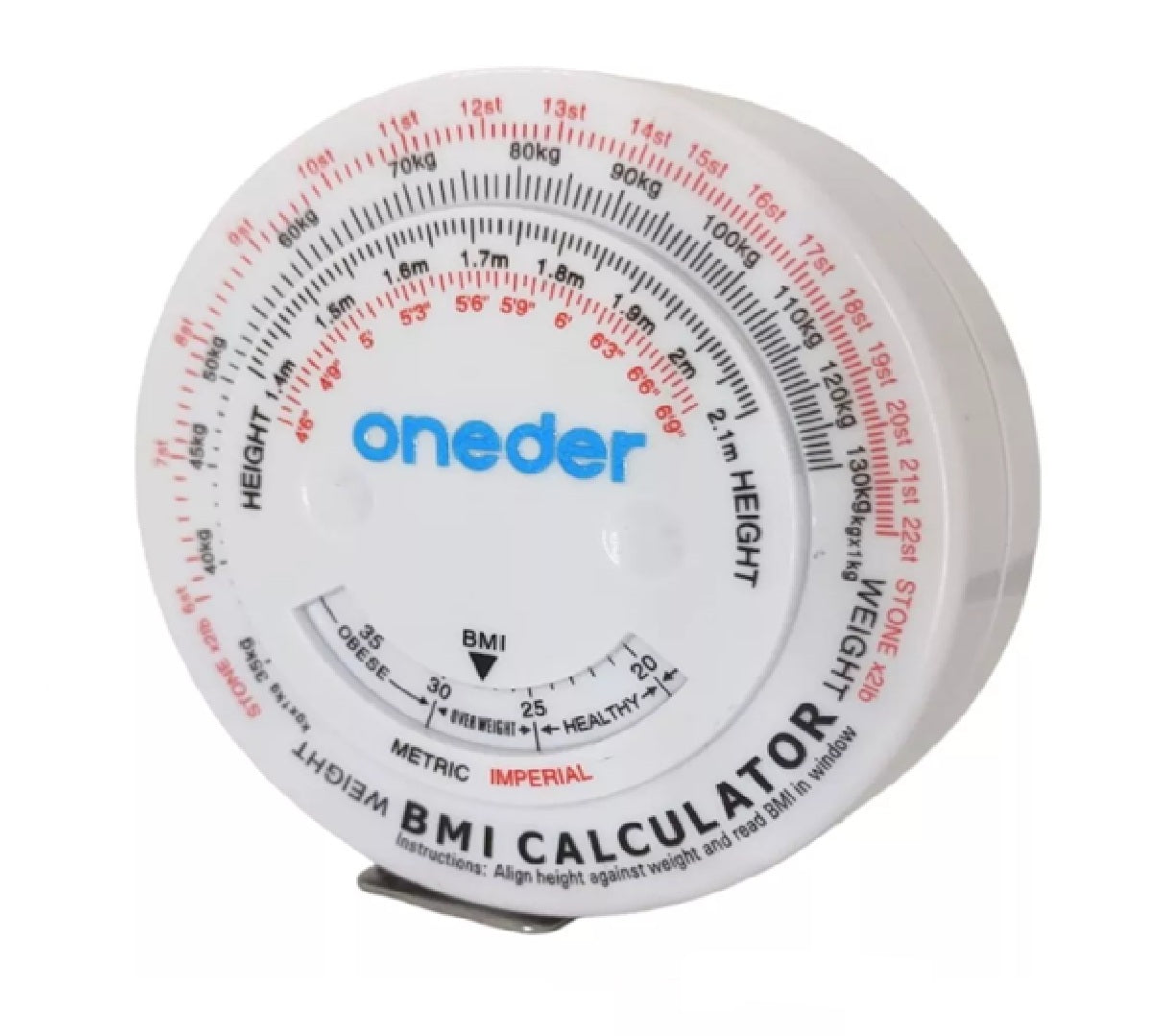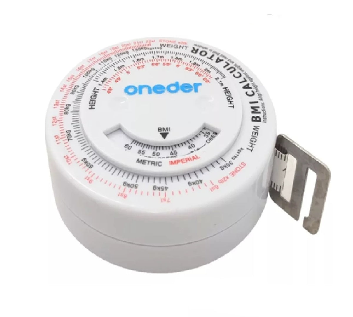 Cinta de medir con un máximo de 150 Cm, ademas de medir sirve para calbular el índice de masa corporal (IMC) de forma rápida y precisa.