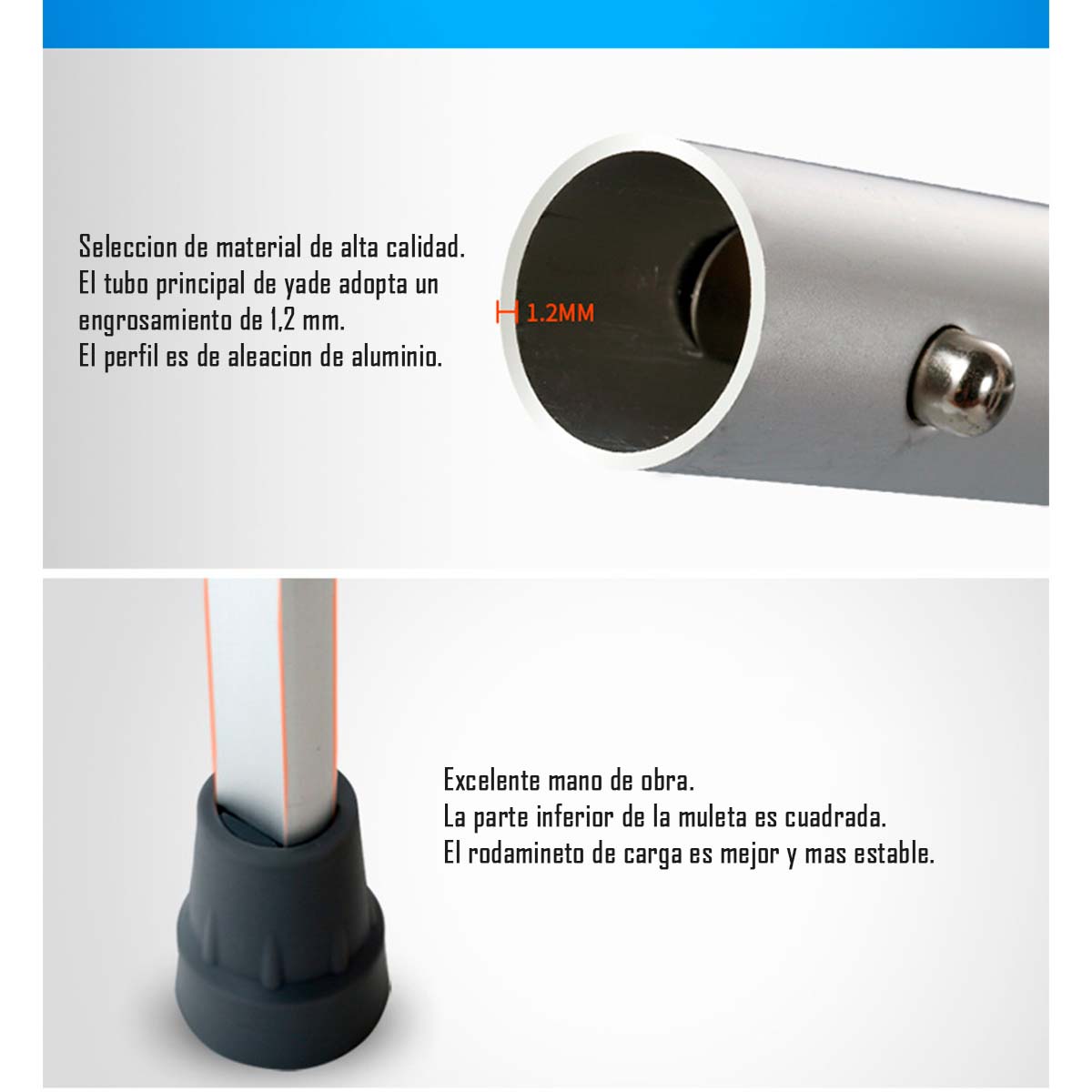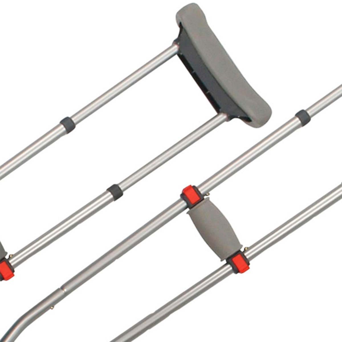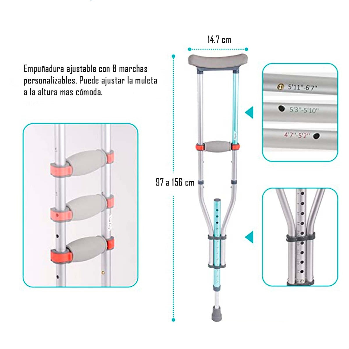 Fabricado en aluminio de alta calidad, liviano y resistente, cuenta con goma antideslizante y espuma en el soporte de la axila.