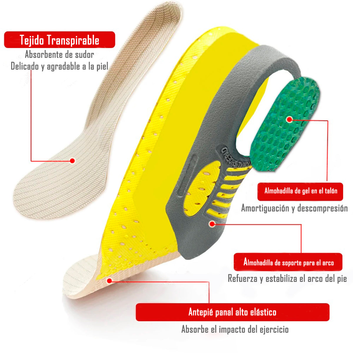 Distribuyen la presión de manera uniforme, reduciendo la tensión en la fascia plantar. Ayudan a disminuir molestias en personas con fascitis plantar, espolón calcáneo y pie plano o cavado.