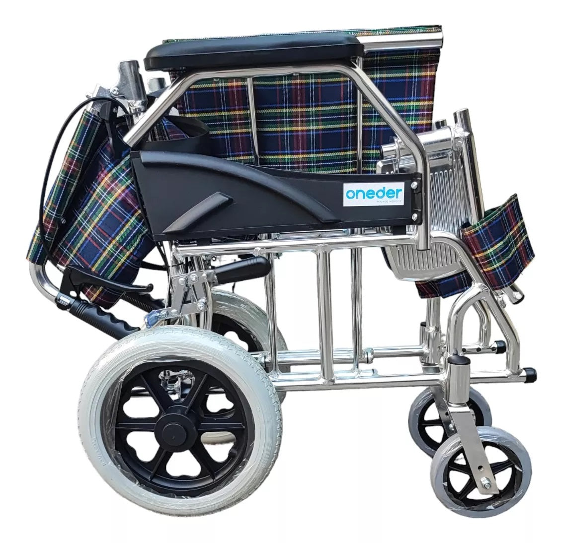 Silla de tamaño compacto y liviana, ideal para paseo para personas con movilidad reducida o en proceso de recuperación.
